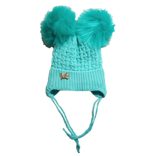 Шапка на девочку  (Велсофт) с двумя помпонами